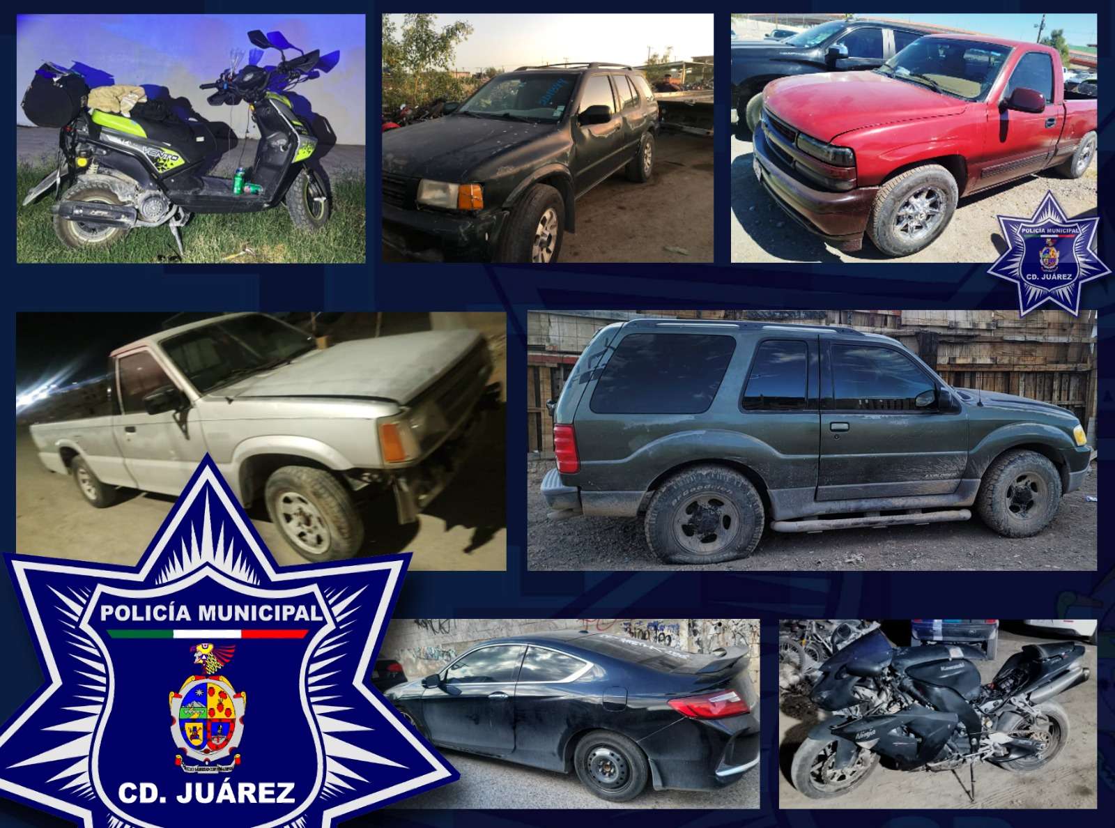 Ciudad Juárez.-Elementos de la Secretaría de Seguridad Pública Municipal, adscritos a los distintos distritos policiales, lograron la recuperación de siete vehículos que cuentan con reporte de robo de días o meses atrás.